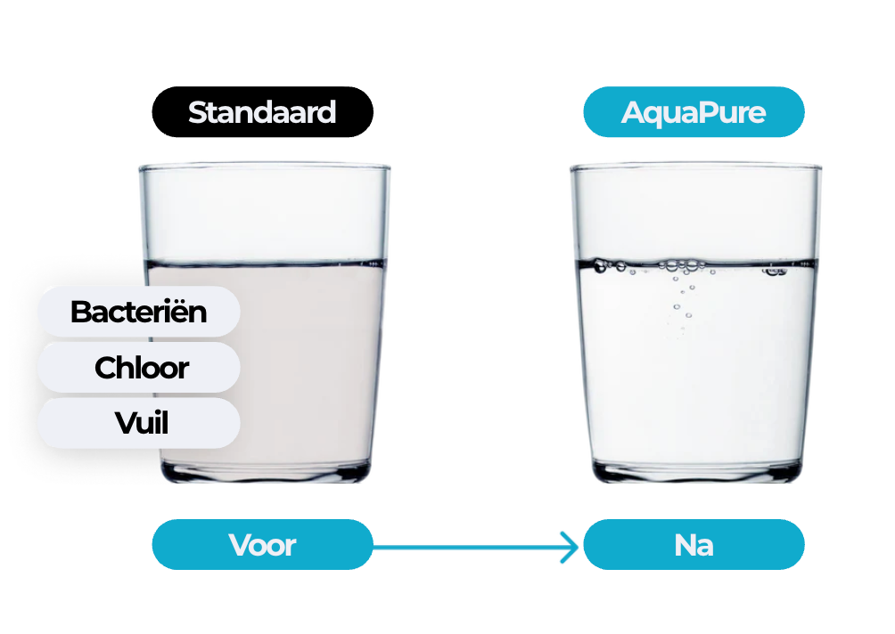 Kraanwater lijkt schoon, maar bevat vaak chloor, kalk en metalen die de natuurlijke oliën van je huid aantasten — met droogheid en irritatie als gevolg.