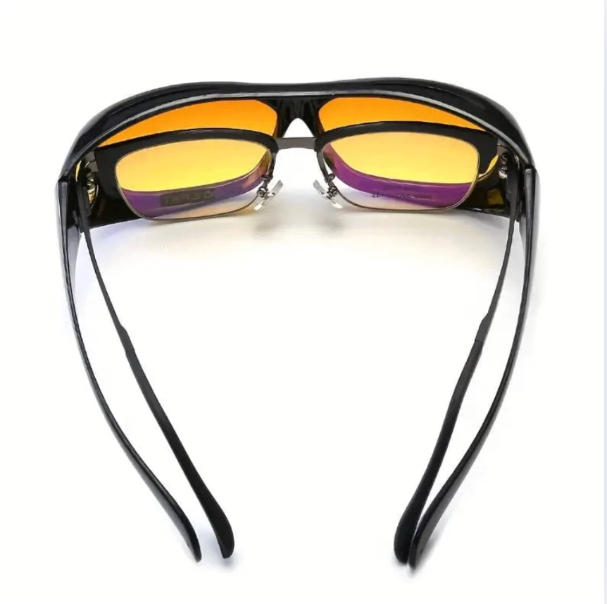 De NightVision Nachtbril heeft een slim overzetontwerp, waardoor je hem comfortabel kunt dragen over je eigen bril, maar ook zonder bril of met contactlenzen.